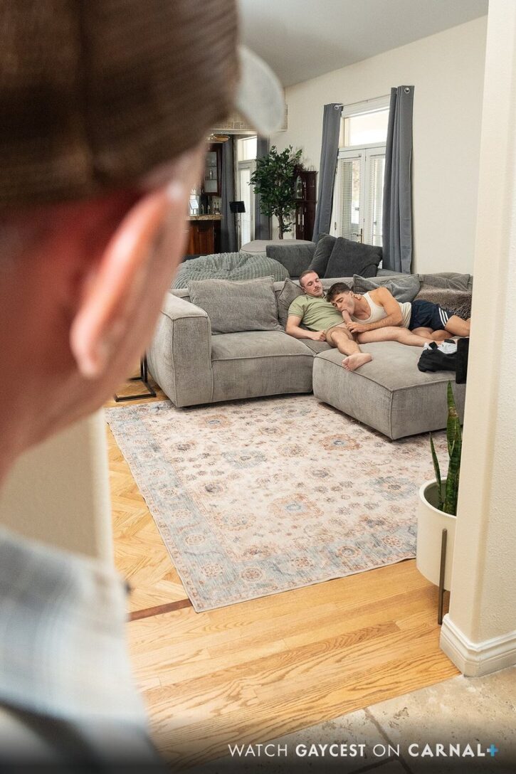 My boy grinned that sexy smirk of his, took me by the hand and pulled me over to the other side of the sofa where Hugo had resumed servicing his father. With both me and my grandson with front row seats to the show that Mr. Adrii and his boy were putting on for us, the moment Mr. Adrii dropped Hugo’s shorts to begin tongue-fucking the groaning twink, I was fully erect and felt that Zander was too!