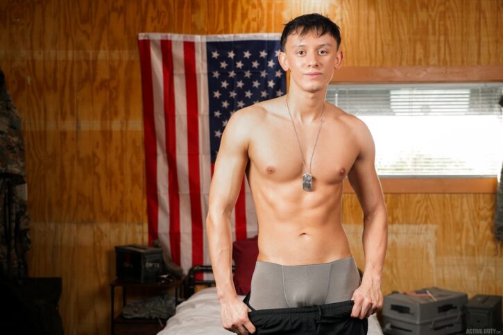 ACTIVE DUTY: Private Alec Vega is still adjusting to life in the barracks. Far from home, the young man is dealing with a new way of life, new surroundings and a severe lack of dick. Luckily for him, earlier that day in the lockers, Corporal River North made him an offer he had been waiting for. Later that night, Alec has his dorm room in the barracks to himself and River is more than happy to give him exactly what he wants.