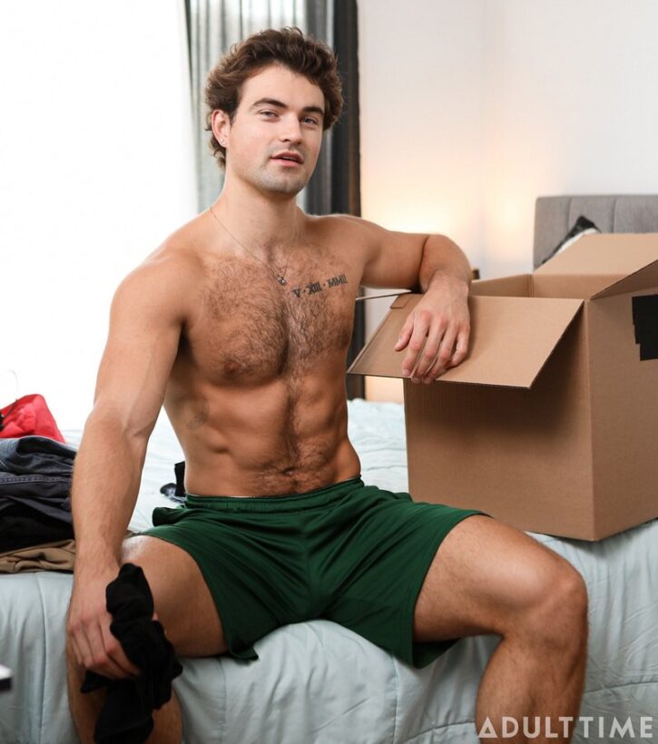 AdultTime: Two straight buddies, Jake (Crush Daddy) and Vince (Mike Monroe), are getting ready for college, excited because they’ll be living in the same dorm room. Jake has been given his sibling’s old video game console to take along, and before packing it he checks to see if a disc was left inside. It turns out there is one… and it’s a porn DVD! Vince talks him into watching the porn together, and as they both get turned on, they come up with flimsy excuses to jerk off together and then go even further!