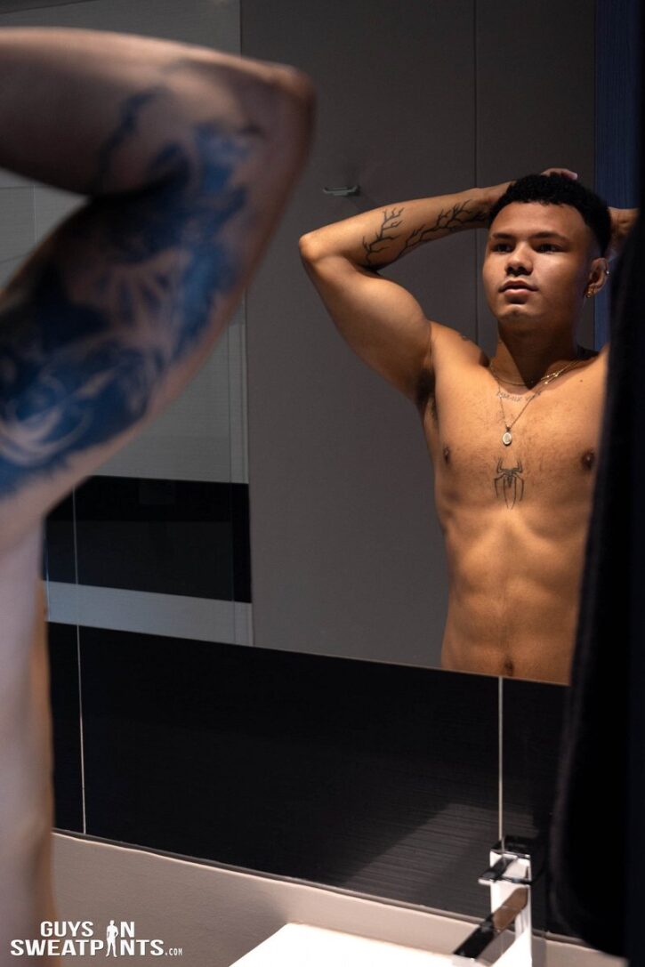 GUYS IN SWEATPANTS: When an unstoppable power-top meets an immovable power-bottom. Andres makes the energizer bunny look tired with the way he fucks… and that’s exactly the kind of top Leo needs. Andres is the perfect alpha top the way he watches his boys service his perfect uncut cock. Every deep intense thrust puts an even bigger smile on Leo’s face.