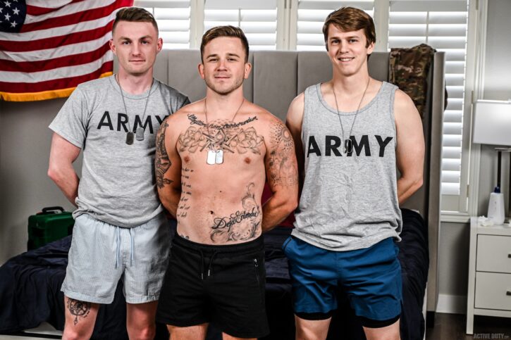 ACTIVE DUTY: It’s just guys being guys, having fun on base. Whether it’s DL hookups in the showers, or sneaky after-hours fuck sessions at the dorms, these guys aren’t afraid to let loose and have some fun with each other’s holes and poles. Kyle Harper’s roommate is gone, and he’s got a perfect plan to have Andrew Delta and Sage Roux over for some fun. Little does he know that Sage and Andrew have plans of their own. It’s fun in the sun that ends with a wild threeway for these hot military men.